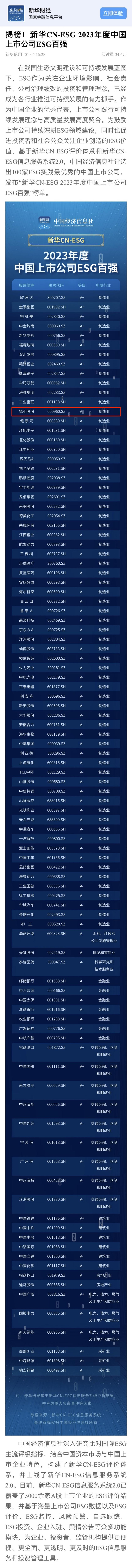 新華CN-ESG2023年度中國(guó)上市公司ESG百?gòu)?qiáng)榜單發(fā)布 錫業(yè)股份獲A等級(jí)