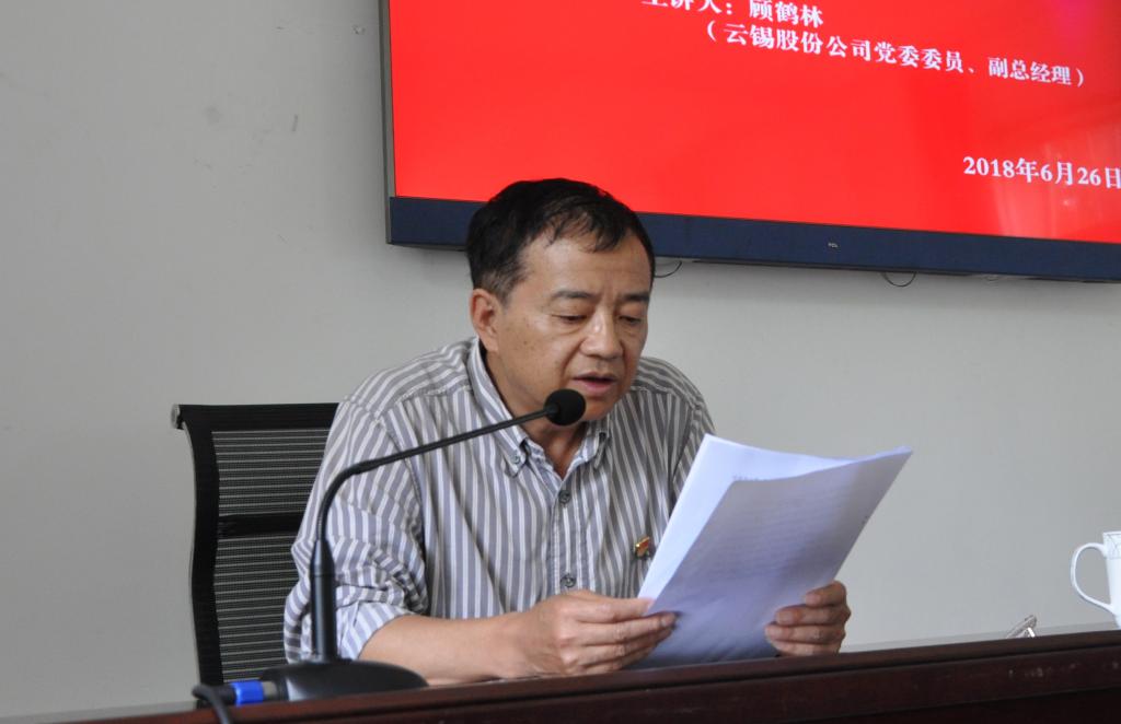 6月26日,錫業(yè)股份黨委委員、副總經理顧鶴林結合錫化工產業(yè)發(fā)展的實際,圍繞如何“學懂弄通做實”十九大精神,以《踐行十九大精神、做新時代黨員》為主題,為化工材料分公司的黨員干部講了一堂黨風廉政建設專題黨課。